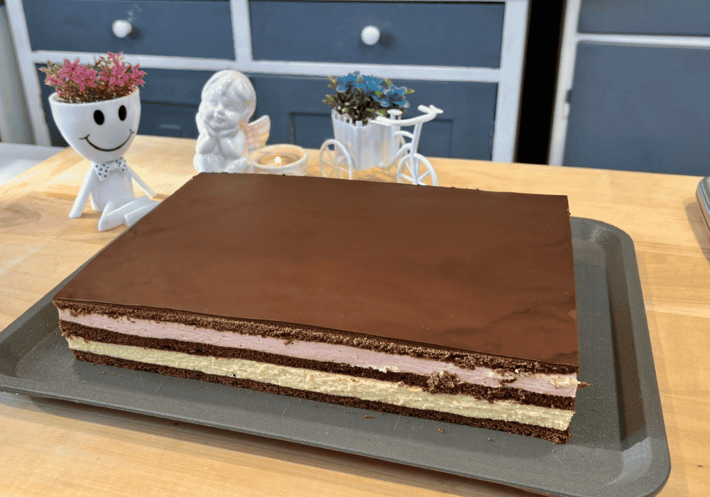 A Lajcsi szelet egy igazi klasszikus magyar sütemény, amely generációk óta ott van az ünnepi asztalokon. Puha, kakaós mézes lapok, kétféle krémes töltelék (puncs és vanília), valamint a tetején fényes csokoládémáz teszi igazán ellenállhatatlanná.