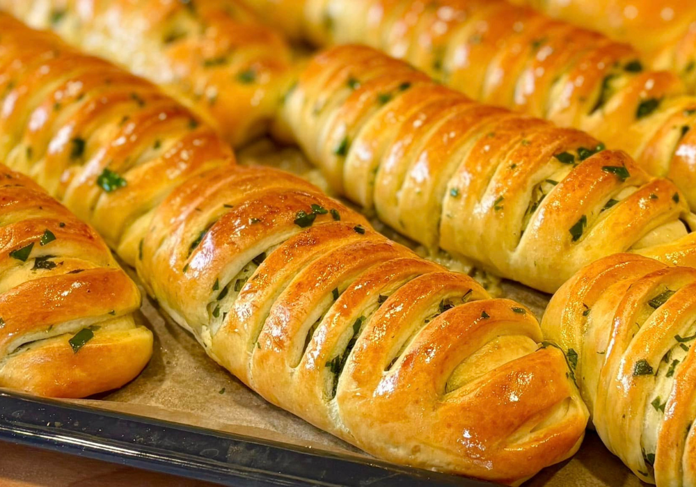 Puha, foszlós tészta, illatos medvehagyma és olvadó sajt egyetlen finom péksüteményben. Ez a medvehagymás-sajtos stangli tökéletes reggelire, uzsonnára, vendégvárónak vagy akár egy tartalmas leves mellé is. Frissen sütve az igazi, amikor a tetejét még forrón megkenjük a vajas-medvehagymás keverékkel — ettől lesz igazán fényes, illatos és ellenállhatatlan.